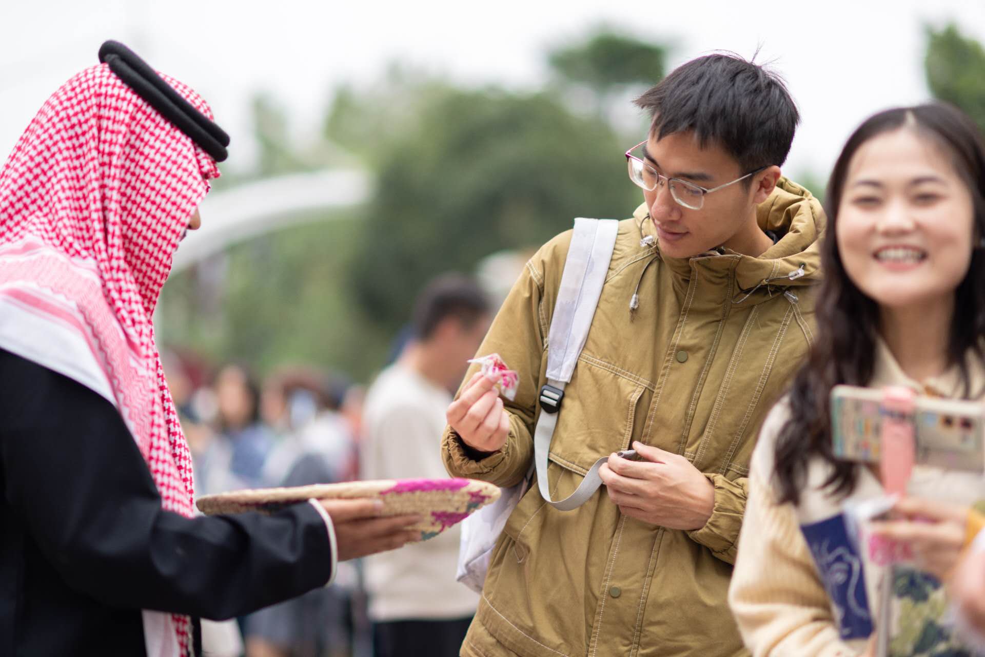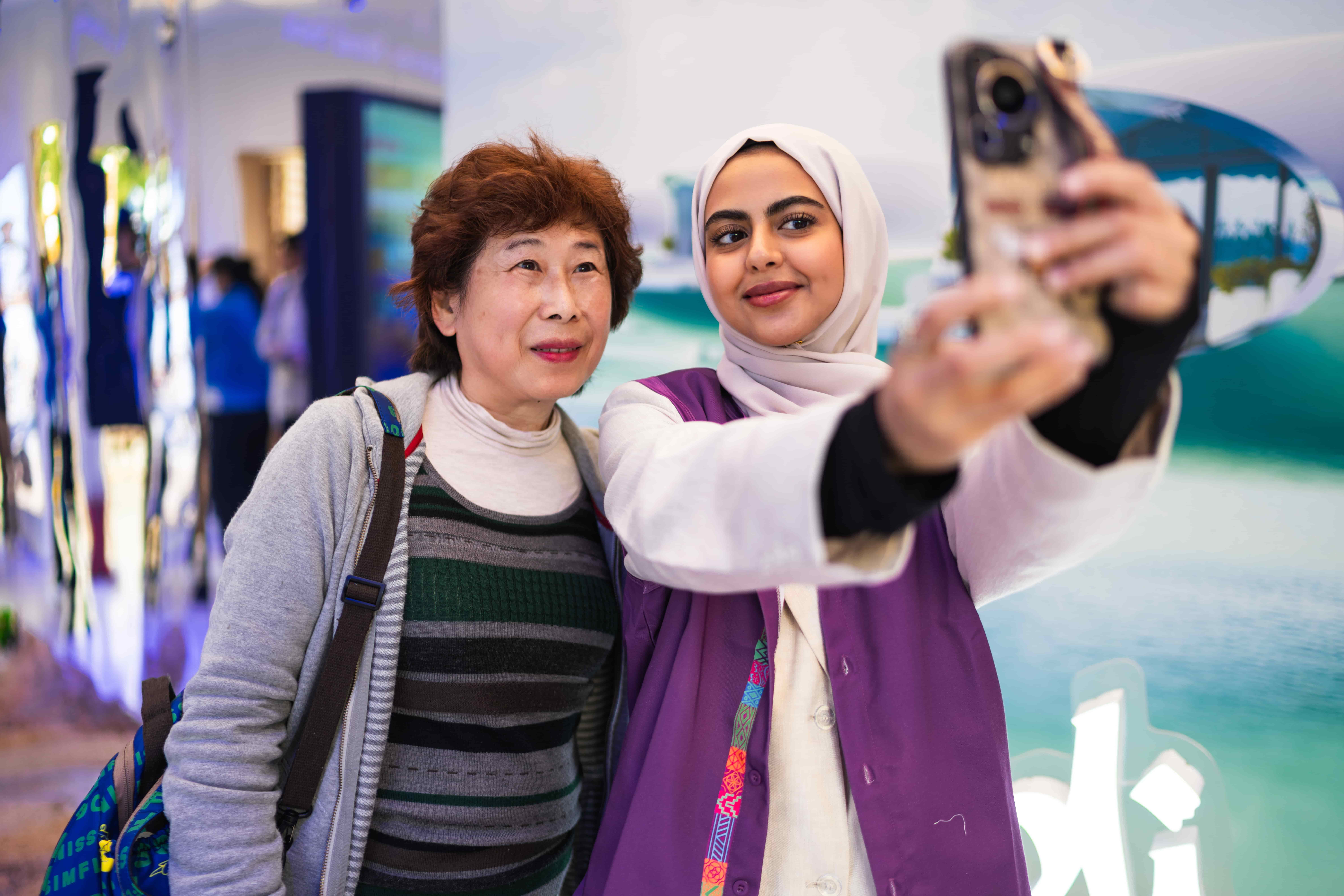 而在利雅得展台,游客可将中文名字译为阿拉伯语,由工作人员现场书写成阿拉伯书法的艺术明信片,成为一份独一无二的纪念;现场更设有“阿拉伯服饰拍照亭”,游客可以试穿经典沙特长袍,由现场工作人员贴心协助穿戴,帮你定格成为“一日沙特人”的难忘瞬间。
