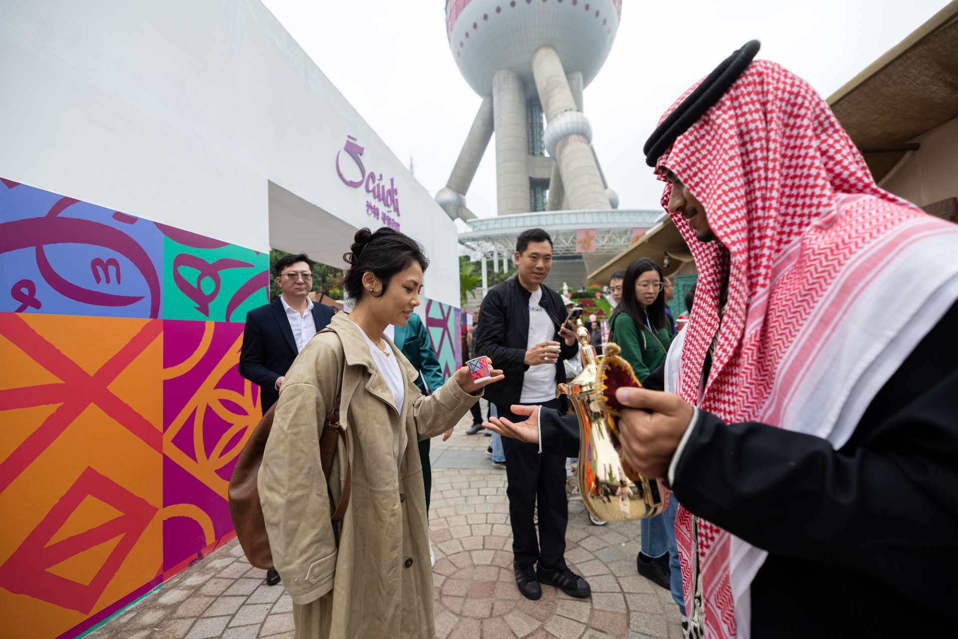 2025年11月8日,中国上海——11月8日,上海外滩东方明珠塔城市广场上,“沙特小镇”沉浸式体验活动热情启幕。活动首日气氛热烈,现场人流如织,各展位前早早排起长龙,“沙特小镇”已成为今冬沪上最具异域风情的打卡热点。