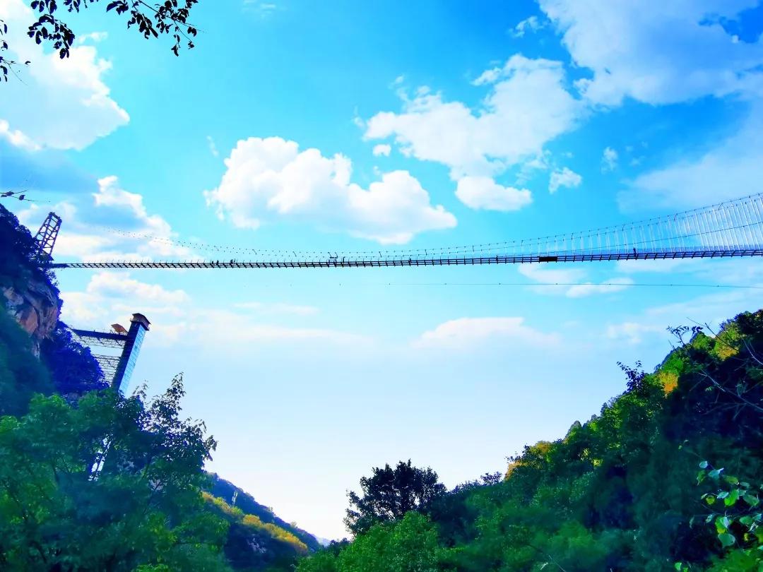走进景区,远远望去,一桥飞架,连接着两座山头。走上天桥,青山叠翠,云雾缭绕,不时踩到会“碎”的玻璃,视觉、听觉、触觉全方位刺激,足以挑战你的胆!