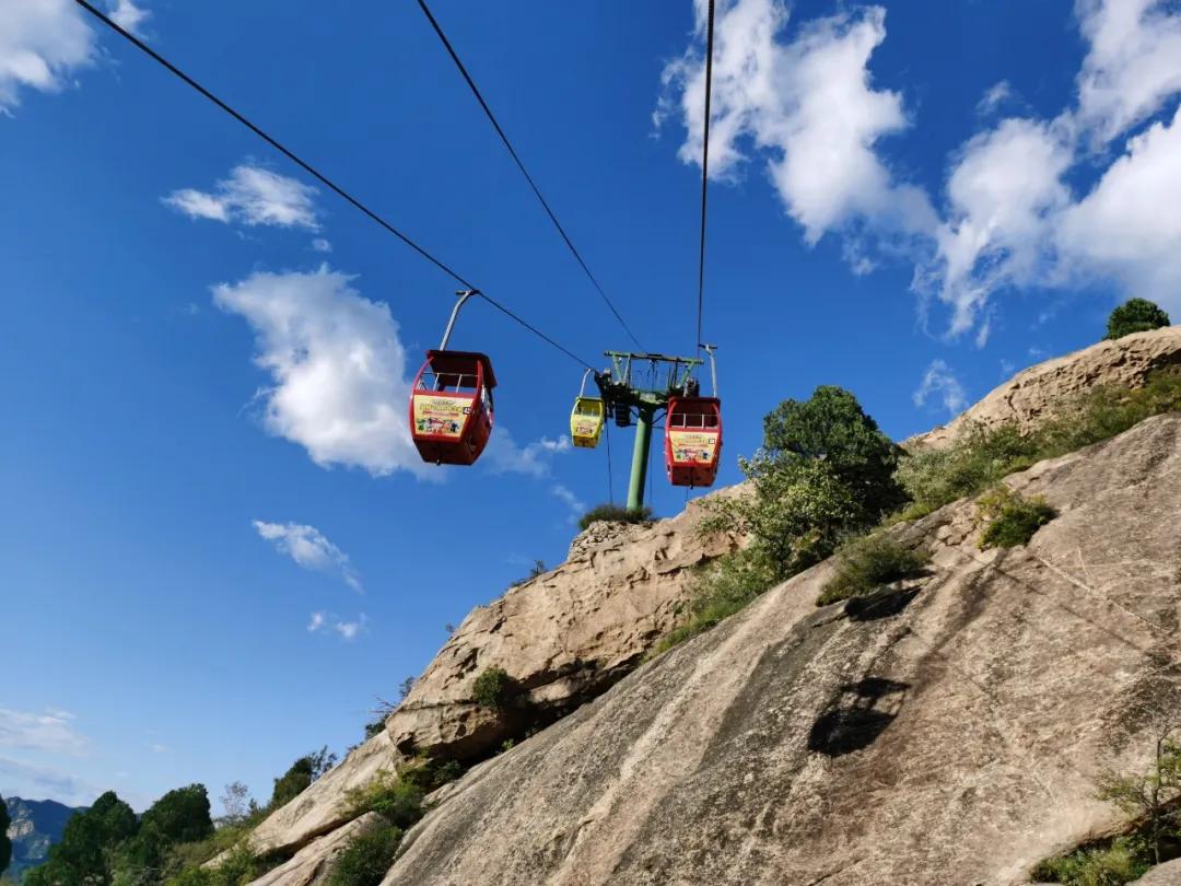 观光索道是清凉谷山顶的一条绝佳空中观景长廊。乘坐缆车缓缓 飘行在林海之上,绝美的空中原始花园尽收眼底,白云袅袅,满目碧翠,时有飞鸟在脚下掠过,时有树梢花朵似探手可及。