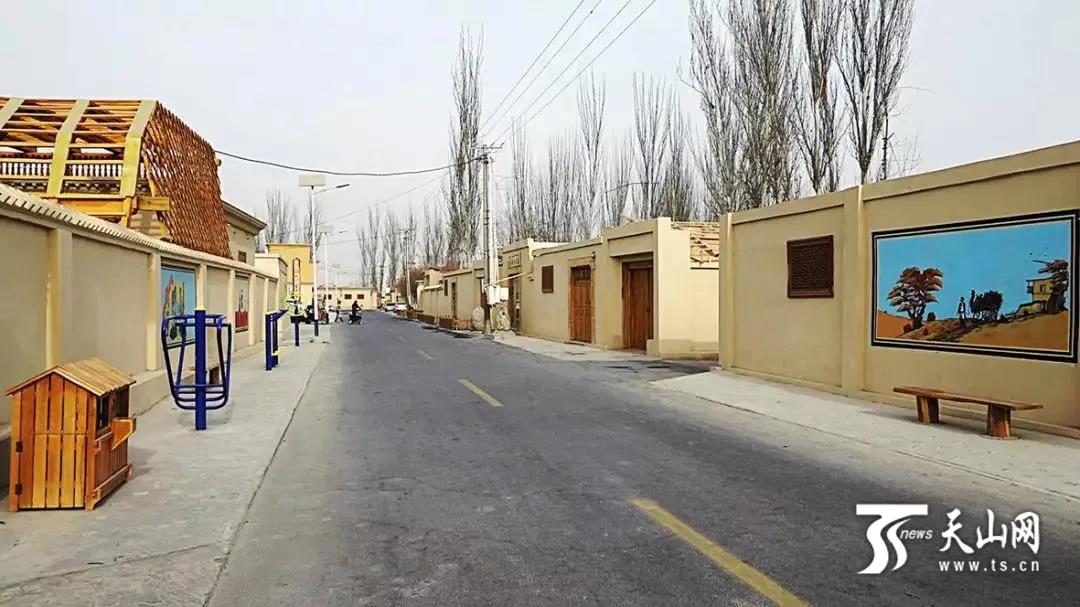 9月的“玉和小镇”, 宽阔通畅的柏油路,一排排色彩鲜明的“阿以旺”传统风格民居错落有致,墙面上色彩亮丽的手绘图一幅接着一幅,餐馆、各类旅游商品、农副产品的商铺林立……这个特色旅游小镇位于墨玉县城区以南2公里处的墨玉县加汗巴格乡达拉斯喀勒村。