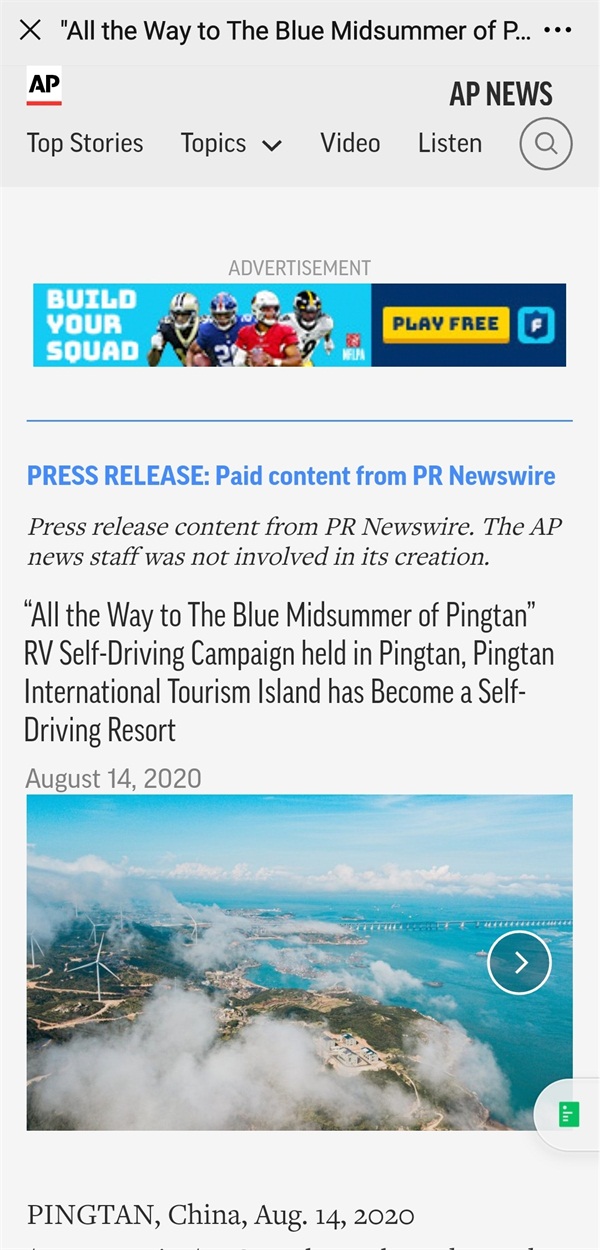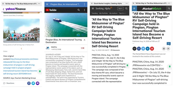 立体整合化的平潭多媒体新闻页捕获了全球媒体兴趣点与关注度。全球四大通讯社之一美联社、全球最大视频搜索和分享平台YouTube及Dailymotion/Vimeo、全球网络排名NO1门户网站YAHOO、全球旅游业领导者的专业组织SIUSA / 加利福尼亚旅游协会CalTravel、道琼斯传媒集团财经媒体Market Watch、全球最大投资社区Seeking Alpha等世界级权威媒体对平潭本次活动信息进行了报道与转载。