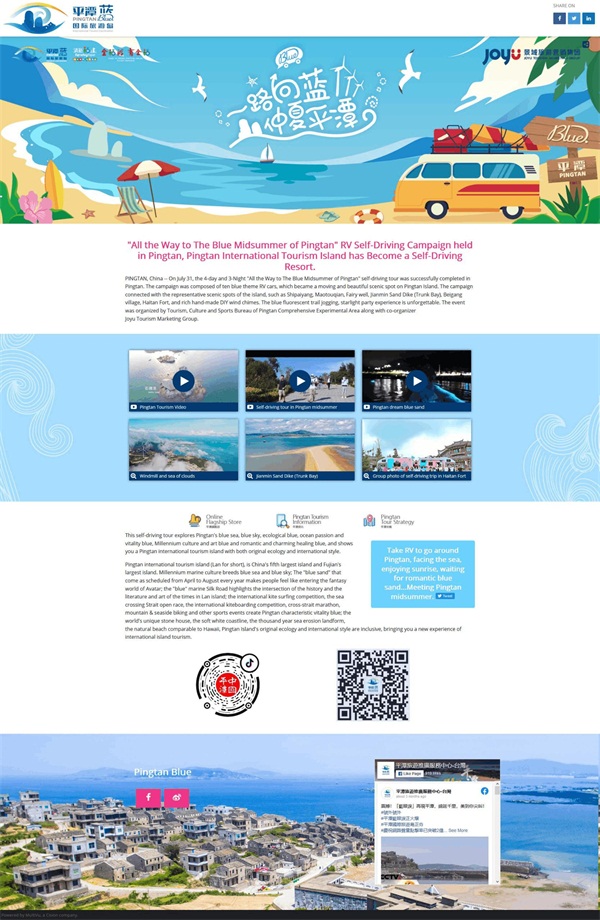 以一场美好治愈的夏日海岛蓝色探索活动为源头,整合平潭国际旅游岛品牌理念、活动信息、极具现场感染力的活动视频、与治愈系蓝色海岛大片,以复合化、内容化、立体化的多媒体新闻页形式,面向全球进行了平潭国际旅游岛的整体品牌形象联动塑造。